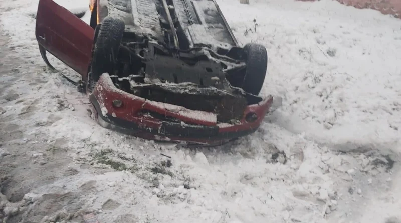 Zăpada nu aduce numai bucurie. O maşină în care se afla şoferul, dar şi patru pasageri, s-a răsturnat seara trecută în comuna Dângeni, din Botoşani.