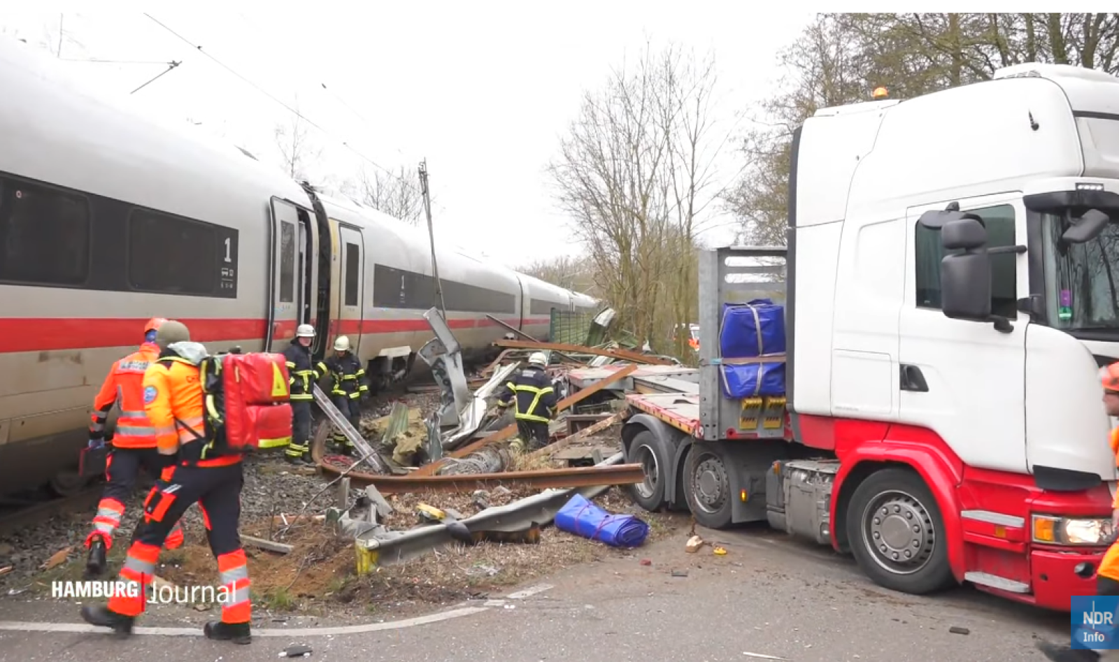 O coliziune dramatică a avut loc marți după-amiază pe ruta feroviară dintre Hamburg-Harburg și Buchholz (Niedersachsen). Un tren de mare viteză ICE al companiei Deutsche Bahn s-a izbit violent de un TIR în cartierul Rönneburg, din sudul orașului Hamburg. La bord se aflau 291 de pasageri.