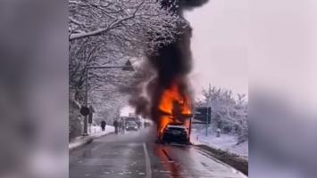 Momente de groază pentru o şoferiţă din localitatea Nalbant, judeţul Tulcea, după ce autoturismul în care se afla a fost cuprins de foc. La faţa locului au ajuns de urgenţă pompierii şi medicii, care au găsit maşina înghiţită de flăcări şi fum gros.