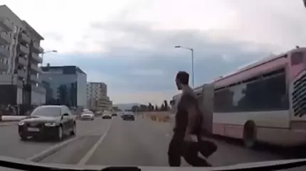 O cameră de bord a surprins momentul impactului. În imagini se vede cum individul trece prin faţa unui camion şi apoi este izbit în plin de autovehicul.