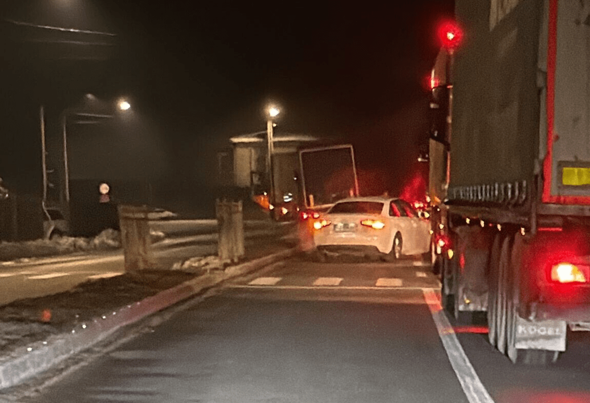 ”Din primele verificări a rezultat faptul că un ansamblu rutier, format din cap tractor și semiremorcă, care transporta două containere metalice, a fost implicat într-un incident, în urma căruia unul dintre containere s-ar fi desprins de pe platforma camionului, în condiții ce urmează a fi stabilite, fiind târât pe carosabil pe o distanță scurtă și acrosând doi stâlpi metalici și un stâlp din lemn.
