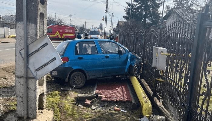 Un accident rutier s-a produs, joi, 12 februarie, în comuna Păulești. Un autoturism a intrat în coliziune cu o țeavă de gaze de la marginea carosabilului.