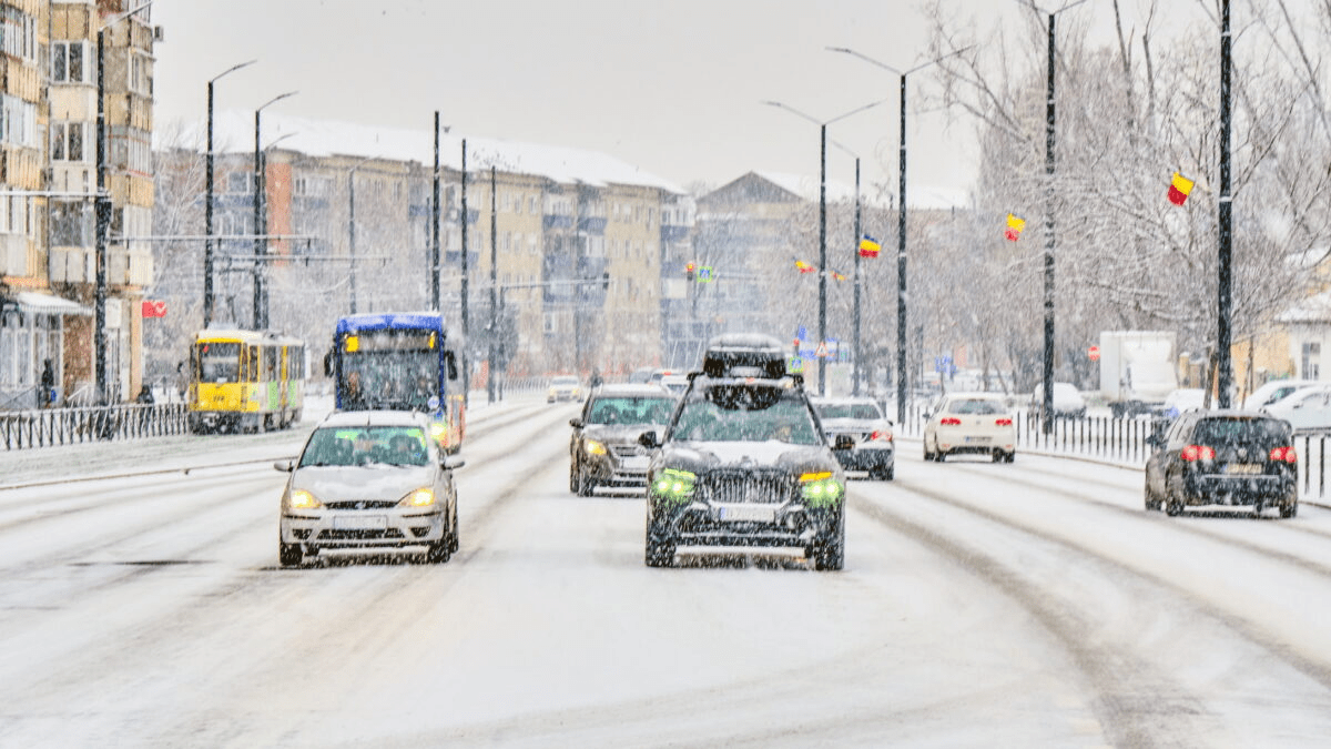 SURSA FOTO: Dreamstime – Mașini iarna în oraș