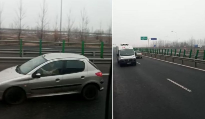 Imaginile au fost surprinse de un șofer aflat în trafic și postate pe rețelele sociale.