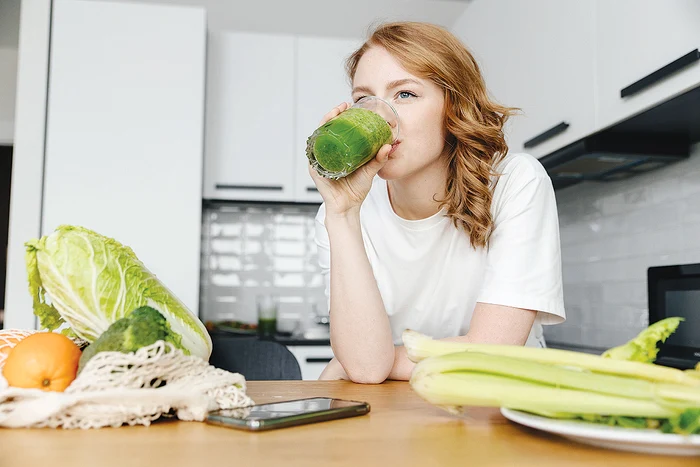 Smoothie verde: O alegere excelentă pentru un mic dejun sau o gustare uşoară! Amestecă fructe şi legume verzi, cum ar fi spanac, kale, mere şi kiwi, pentru a obţine o băutură bogată în nutrienţi esenţiali şi antioxidanţi.