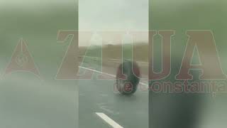 Doi șoferi au reușit să evite la timp impactul cu o roată care s-a desprins în mers de la un autotren care circula în această dimineață pe Autostrada A2 București-Constanța, în zona localității Medgidia.
