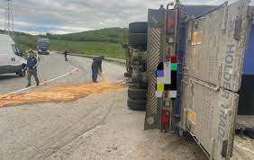 Din primele informații, un autocamion care transporta oi s-a răsturnat pe șosea.