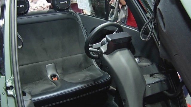 “Este o maşină care poate fi parcată cu faţa către trotuar, ieşirea se face pe trotuar. Acest lucru permite pe un loc de parcare normal să fie parcate trei astfel de autovehicule, pentru că nu ai nevoie de spaţiu lateral”, a explicat Andrei Dumitrescu, reprezentant Microlino.