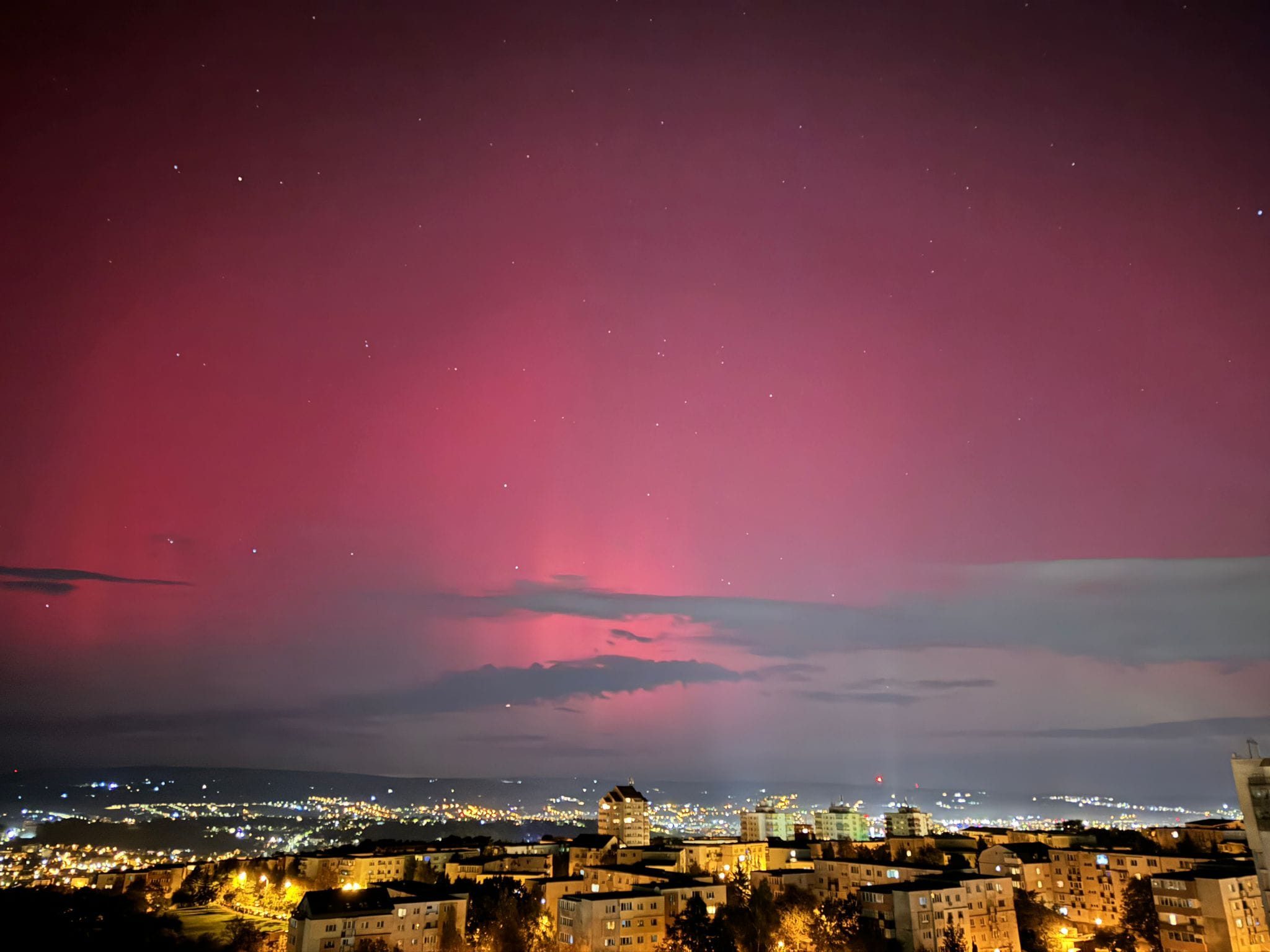 Acceaşi atmosferă magică a fost şi în Botoşani, Baia Mare, Dej, dar şi Piatra Neamţ. Aurora boreală i-a ţinut pe locuitori cu ochii aţintiţi spre cer minute în şir.