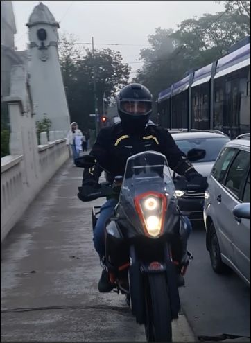 Regulile de circulaţie devin inexistente atunci când eşti poliţist! Asta a dat de înţeles un agent din Timişoara care, pentru a evita traficul de pe Podul Decebal, a decis că este mai bine să meargă cu motocicleta pe trotuar.
