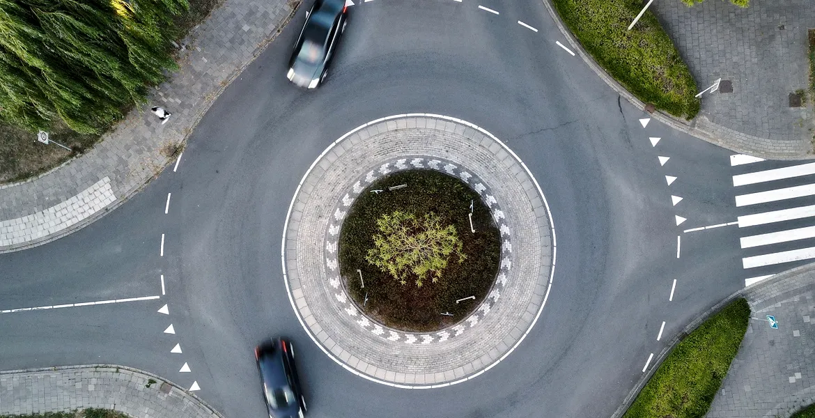 Cum semnalizezi și cum te încadrezi pe bandă dacă întorci în sensul giratoriu?