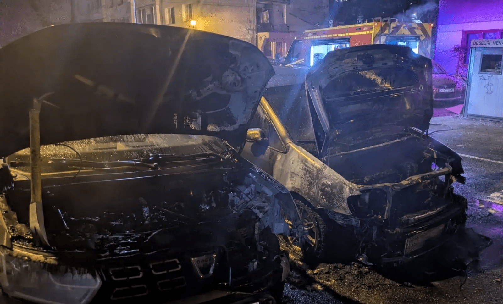 Piatra-Neamț: Trei autoturisme parcate au fost mistuite de flăcări