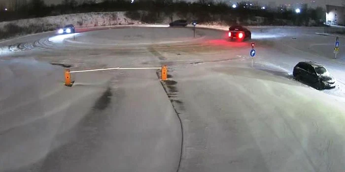 Drifturi pe zăpada în centrele comerciale FOTO: captură video Brigada Rutieră