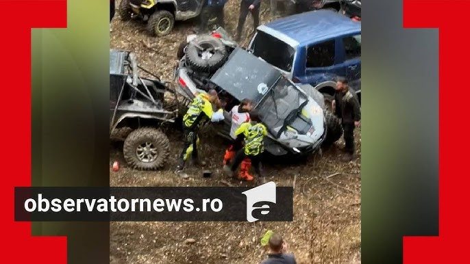 Accident spectaculos în județul Sălaj, chiar în timpul unui concurs de off-road. O maşină în valoare de 30.000 de euro în care se aflau doi concurenţi s-a făcut zob în doar câteva secunde.