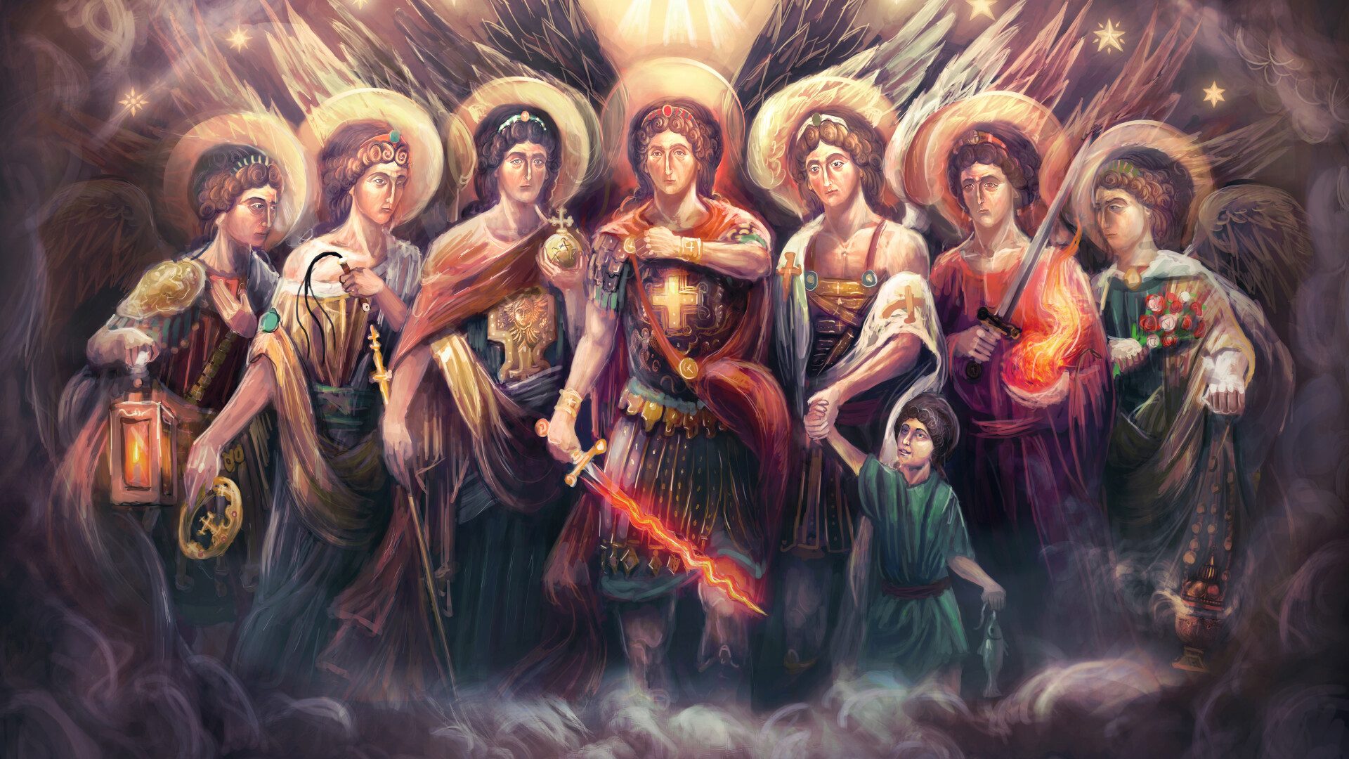 Mihail este primul din ceată, fiind voievodul oștilor cerești și purtând sabia de foc. El are rolul de a păzi legea lui Dumnezeu și de a învinge puterea vrăjmașilor. Gavriil, cunoscut și ca “bărbat-Dumnezeu”, este arhanghelul bunelor vestiri și poartă crin în loc de sabie de foc.