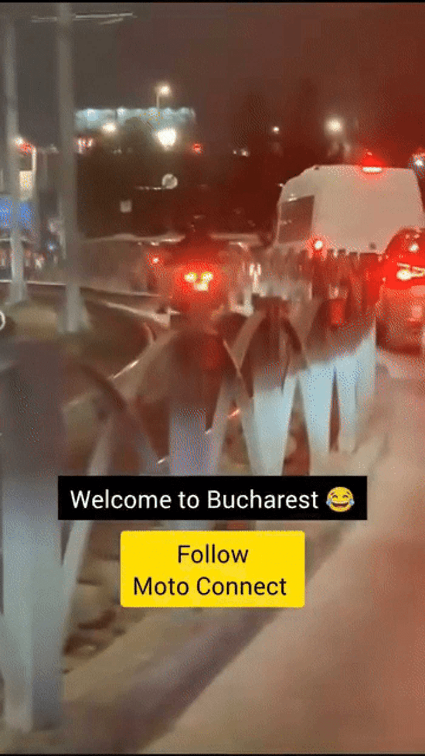 În materialul video distribuit de MotoConnect, alături de mesajul „Welcome to Bucharest”, se vede cum motociclistul își pierde de câteva ori echilibrul şi se sprijină pe picioare, fiind împins lateral de vibrațiile roților care trec peste traverse. Motocicleta înaintează cu dificultate, aproape „în salturi”, fiind clar că drumul neregulat nu este făcut pentru astfel de vehicule.