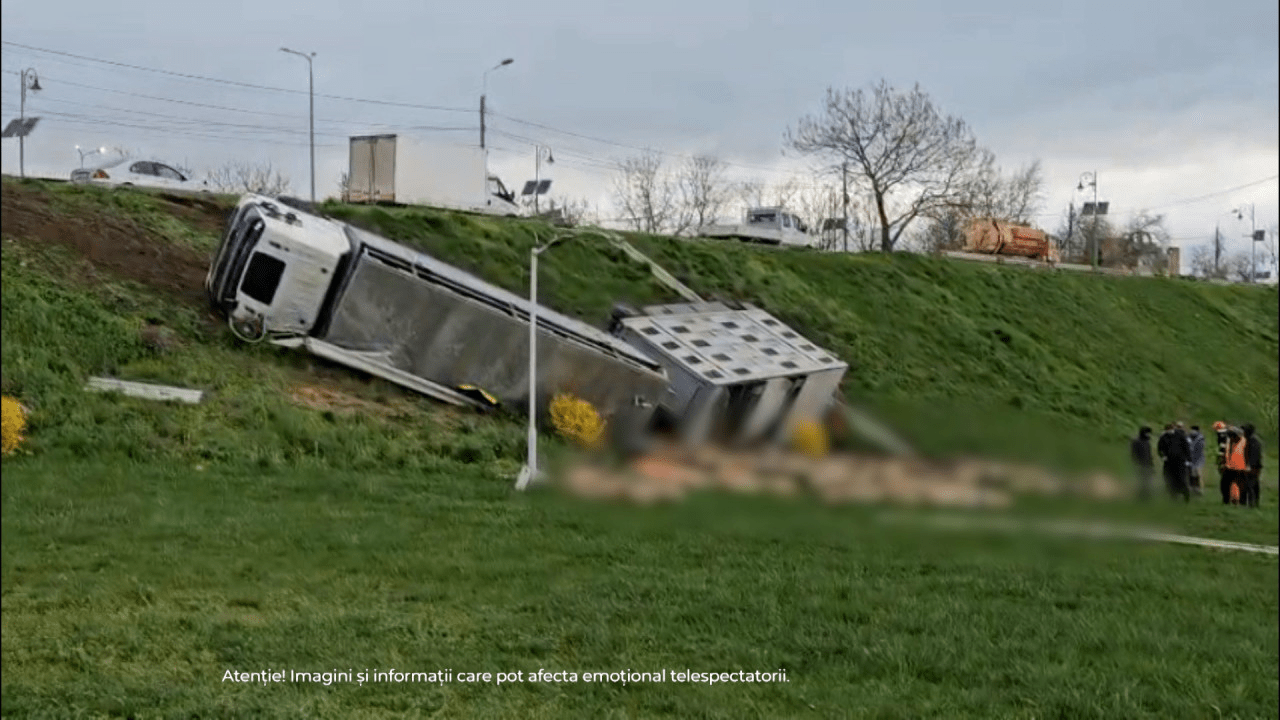 Accident teribil în această dimineaţă într-un sens giratoriu din Năvodari. Un TIR încărcat cu oi s-a răsturnat iar bilanțul este unul dramatic – peste 160 de animale au murit. În jur de 130 de animale salvate au ajuns înapoi la fermă. TIR-ul transporta animalele către portul Midia, unde urmau să fie îmbarcate pentru export. Cristina Niță ne spune în ce stare este șoferul și ce s-a întâmplat concret acolo.