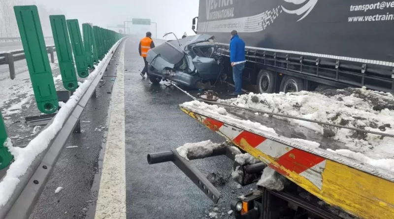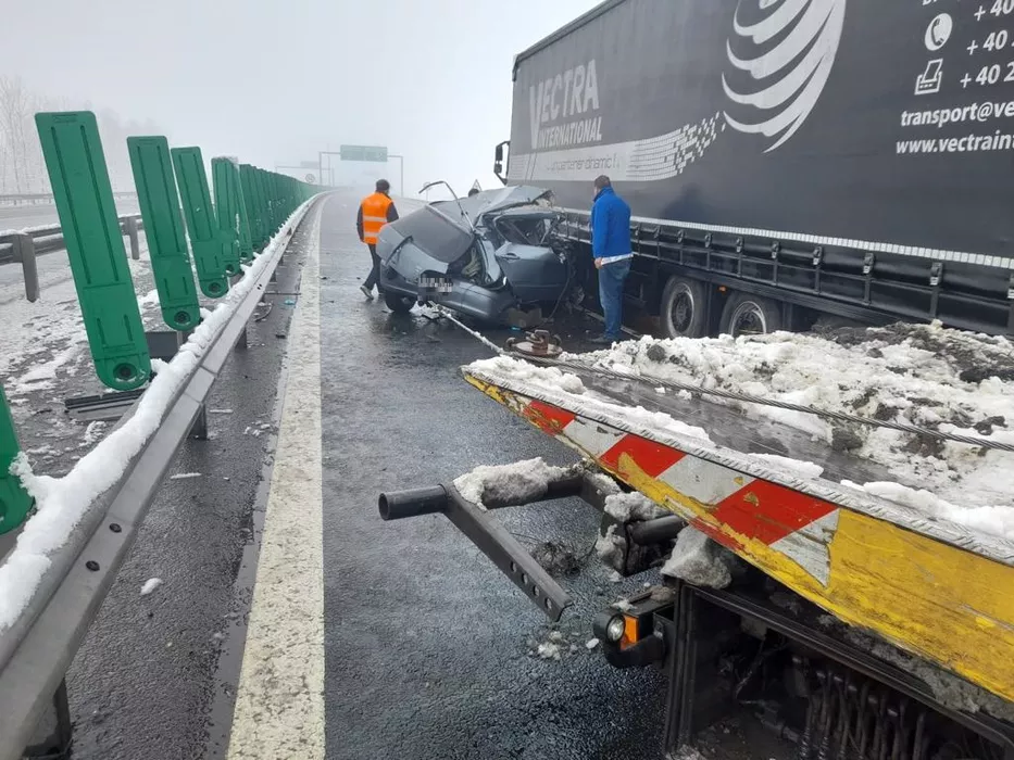 Pe autostrada A1 Deva-Nădlac, kilometrul 583, în apropierea localităţii Nădlac, judeţul Arad, s-a produs un accident rutier în care au fost implicate un autoturism şi un TIR, informează Centrul Infotrafic din IGPR .