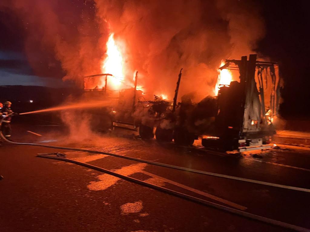 Remorca unui TIR care transporta aparatură electronică și electrocasnică a luat foc, joi dimineață, pe autostrada A3, sensul de mers Luduș-Târgu Mureș.